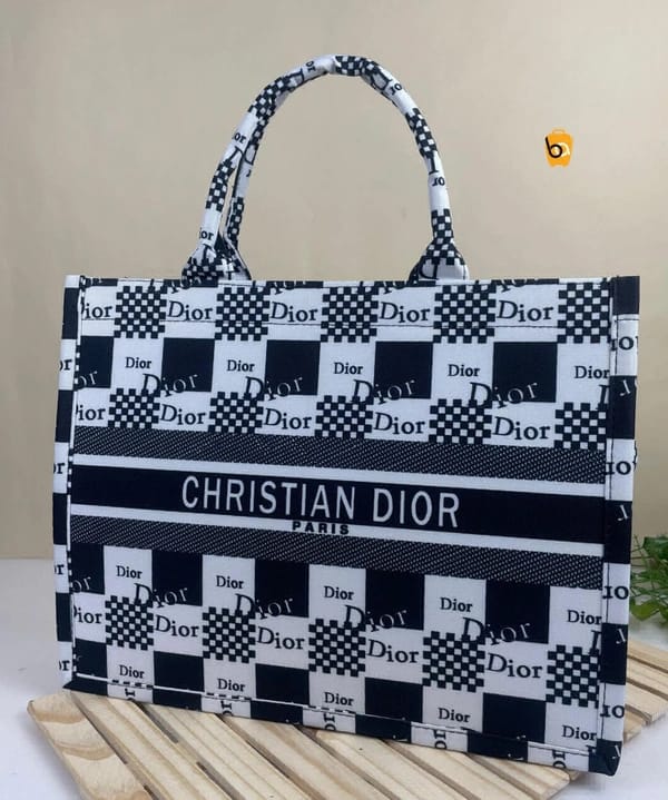 Christian Dio_r Paris Signature Book Tote In Check-Board Pattern Includes Dust Bag